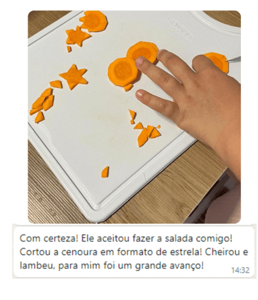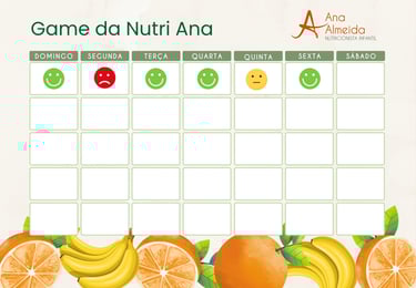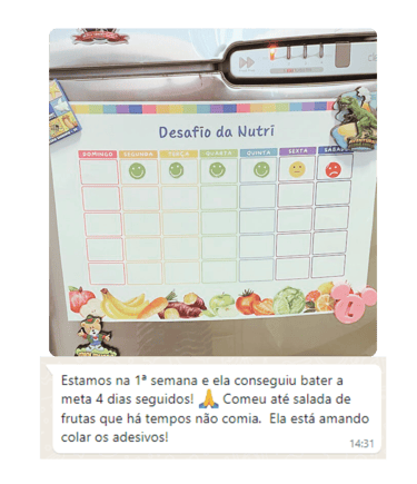 Escolhemos 7 metas, uma para cada dia da semana, e seguimos firme com o Game. A partir da 3ª semana, notamos uma melhora na alimentação do Caio! Ele voltou a comer maçã e até melancia, frutas que ele não aceitava há meses.