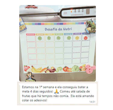 Adorei o fato de o Game da Nutri ser reutilizável. A cada mês, fazemos novos desafios e minha filha está cada vez mais aberta a novas comidas.