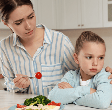 Sente-se frustrada, pois as refeições se tornaram um verdadeiro campo de batalha.