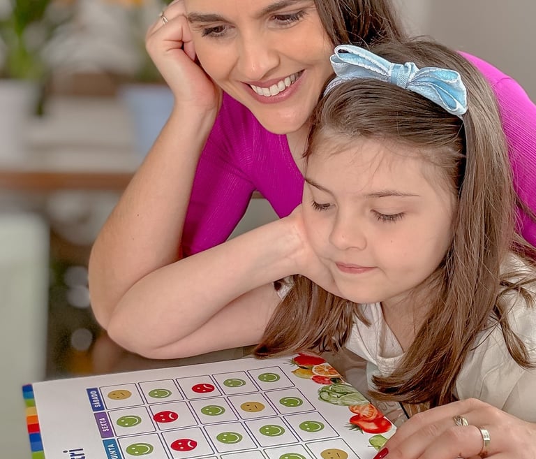 O sistema de adesivos coloridos motiva seu filho a participar e se engajar nas atividades. A família também pode optar por oferecer uma recompensa ao final do Game