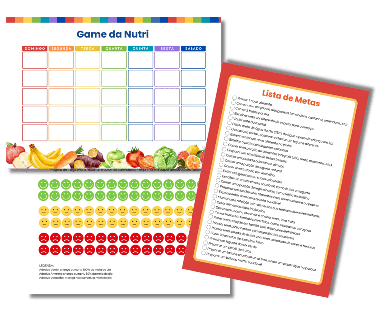 O profissional de nutrição poderá utilizar o material com seus pacientes, seja aplicando o Game presencialmente, imprimindo e entregando à família, ou enviando o arquivo em PDF para a família do paciente.